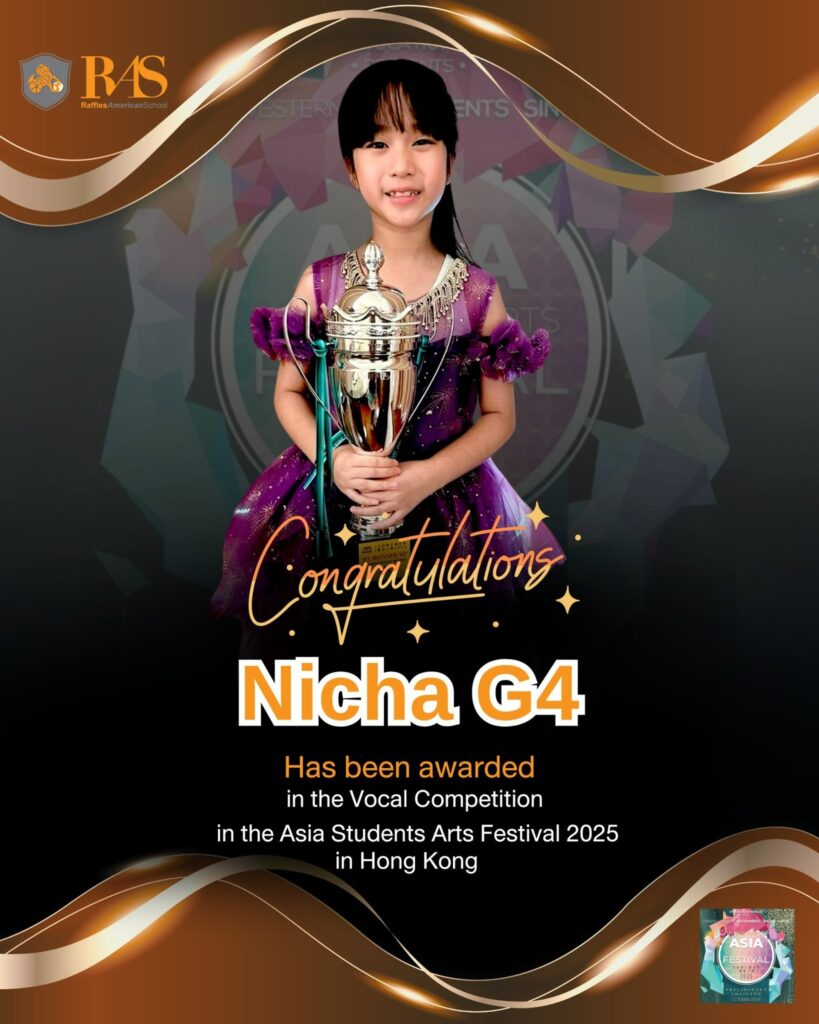 Congratulations to Nicha (Grade 4) for competing in the Vocal