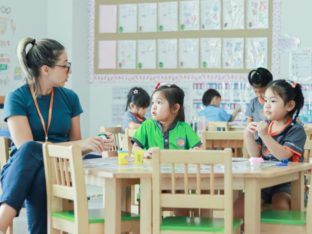 • Each classroom has three staff members — a Homeroom Teacher, Teaching Assistant, and Thai Nanny — to provide full support and care.