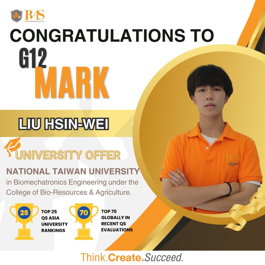 He has also been awarded a full tuition subsidy and monthly stipend, reflecting the strength and competitiveness of his application. Beyond academics, Mark has been a dedicated member of our volleyball team, showing leadership and maturity throughout his time at RAS.