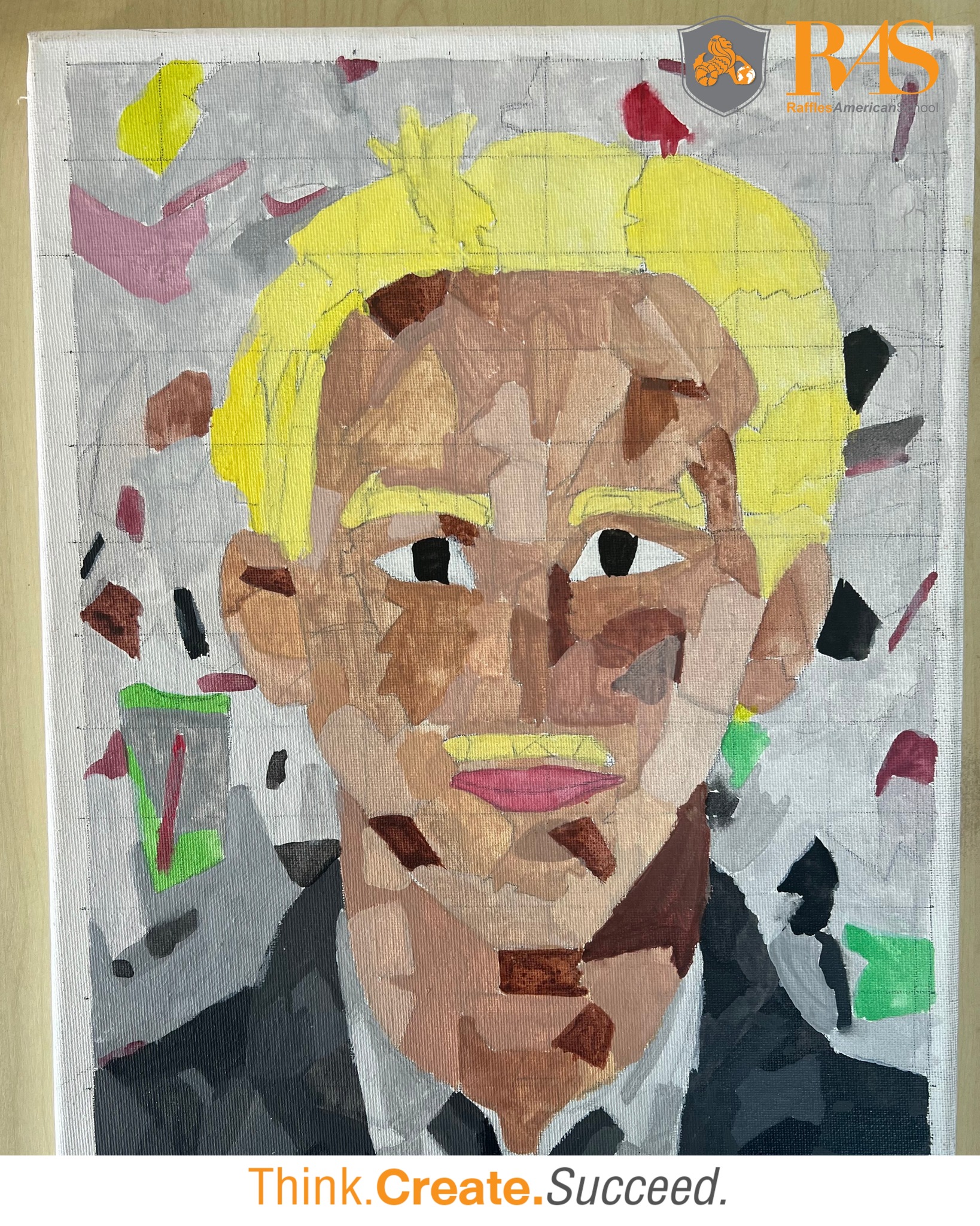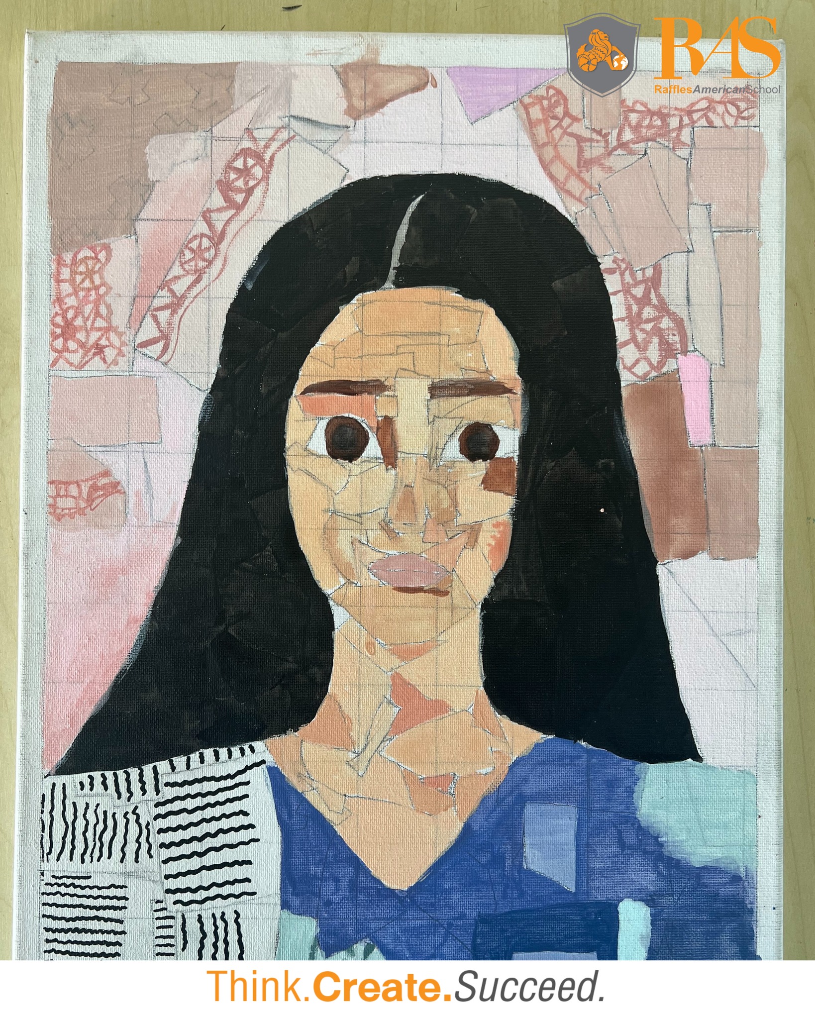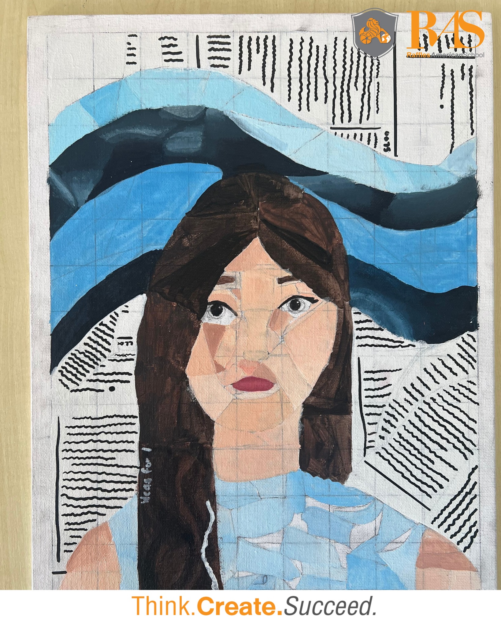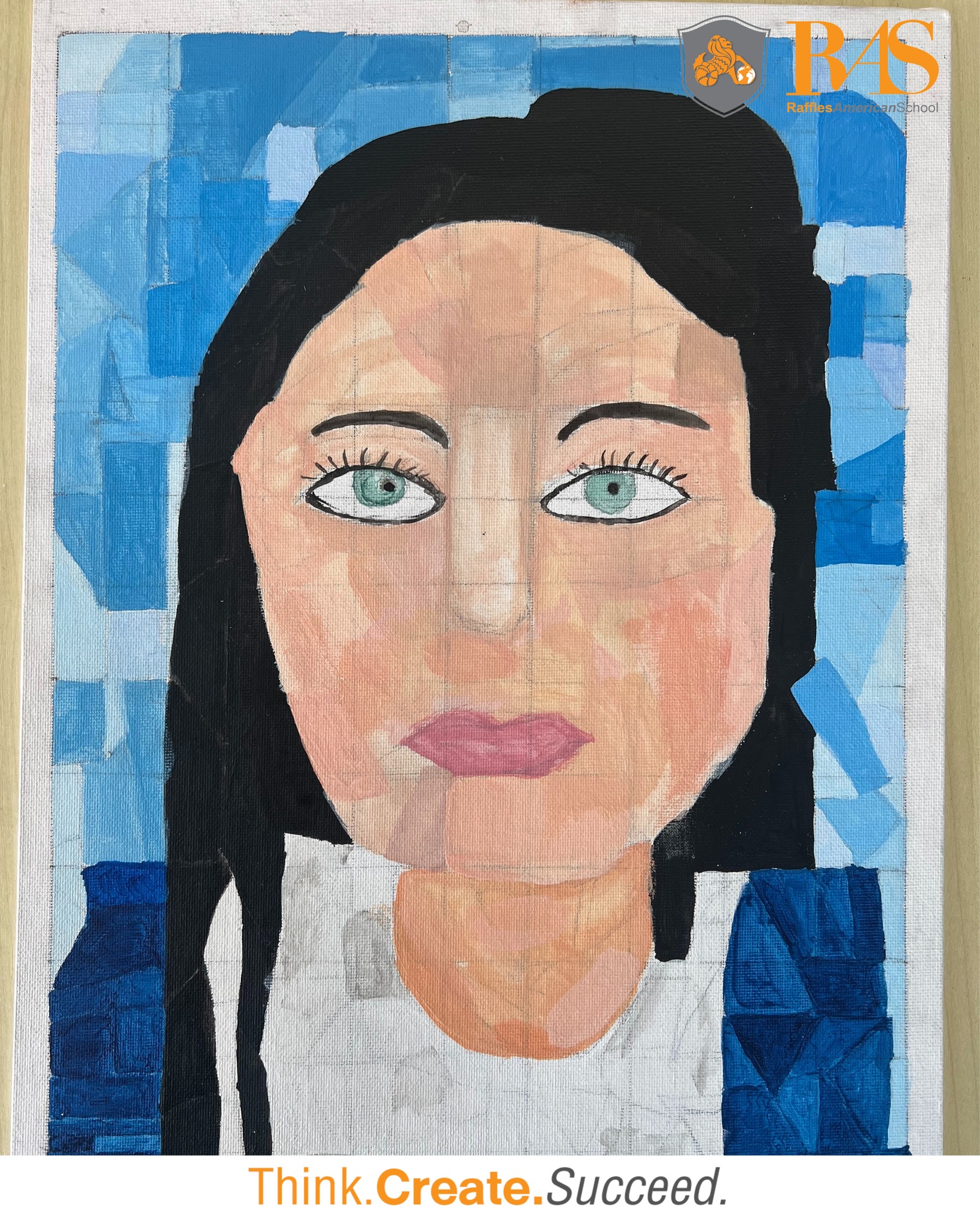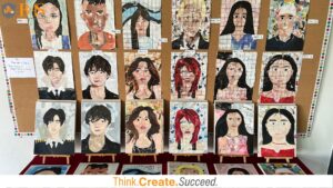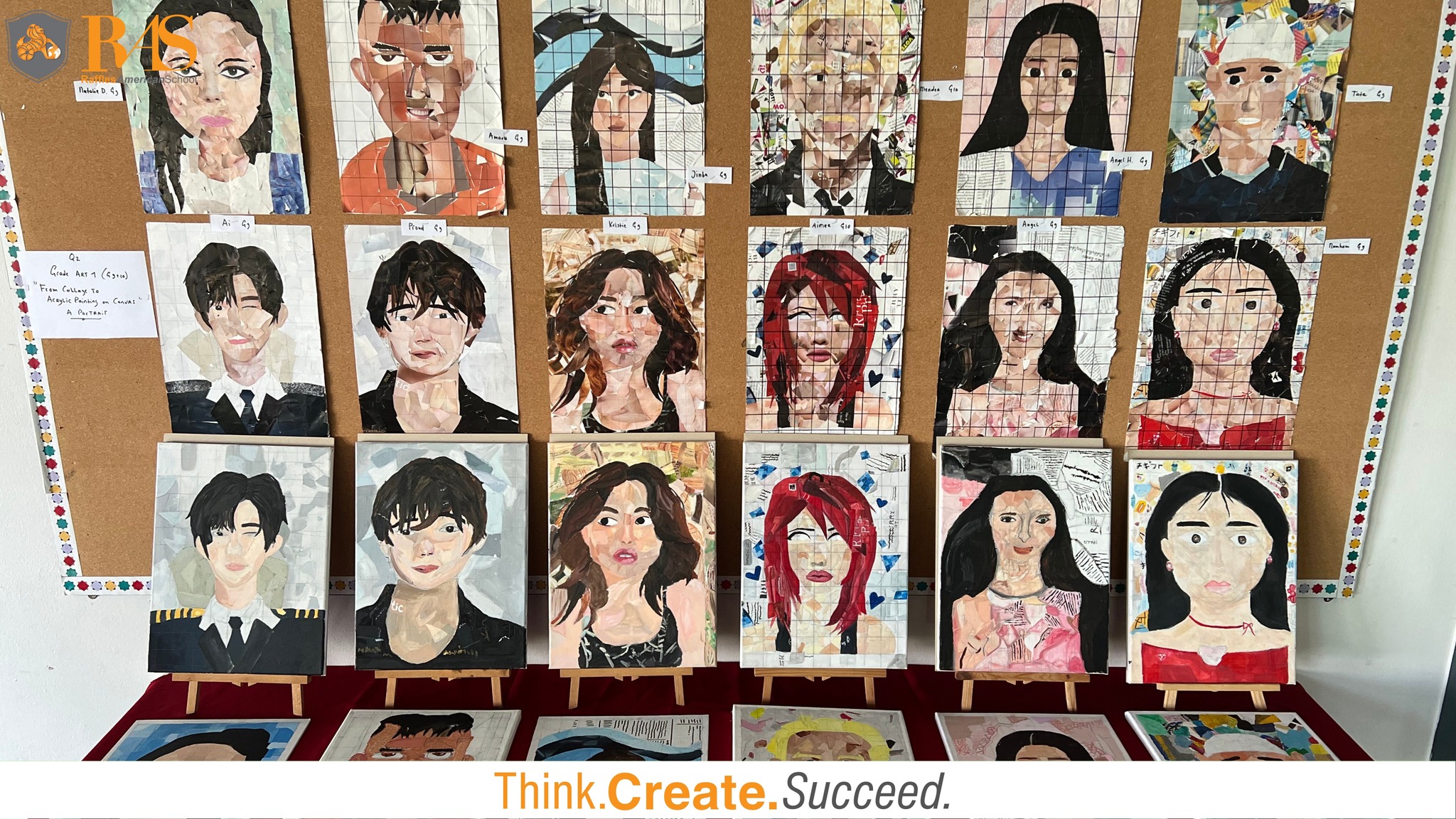 This Q2 collection highlights Grade 9 Art 1 acrylic portraits inspired by cubist collage, along with Grade 6 community art group projects on the theme “How to Stop (Cyber) Bullying.”