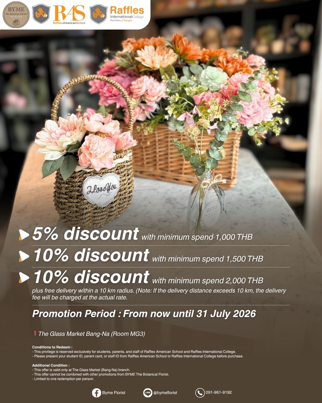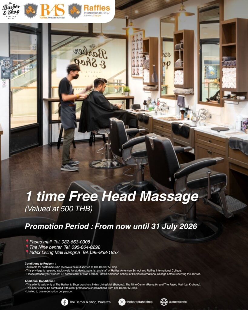 Proof: Please present your student ID, parent card, or staff ID from Raffles American School or Raffles International College before receiving the service.