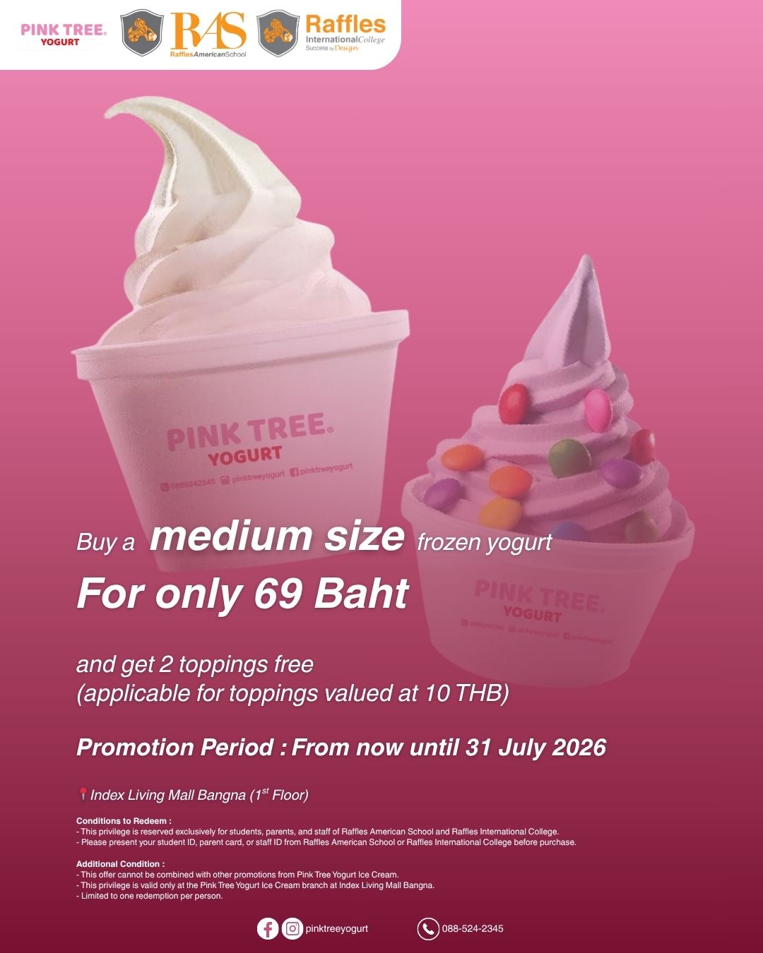 This privilege is valid only at the Pink Tree Yogurt Ice Cream branch at Index Living Mall Bangna.