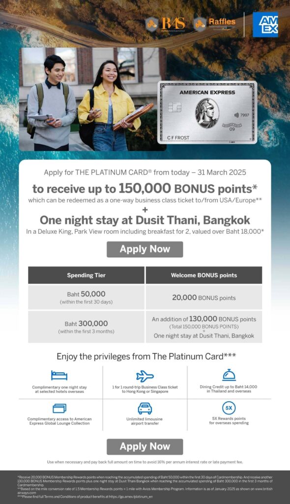 ชำระค่าเทอมที่ Raffles American School ด้วย THE PLATINUM CARD® พร้อมรับสิทธิพิเศษมากมาย