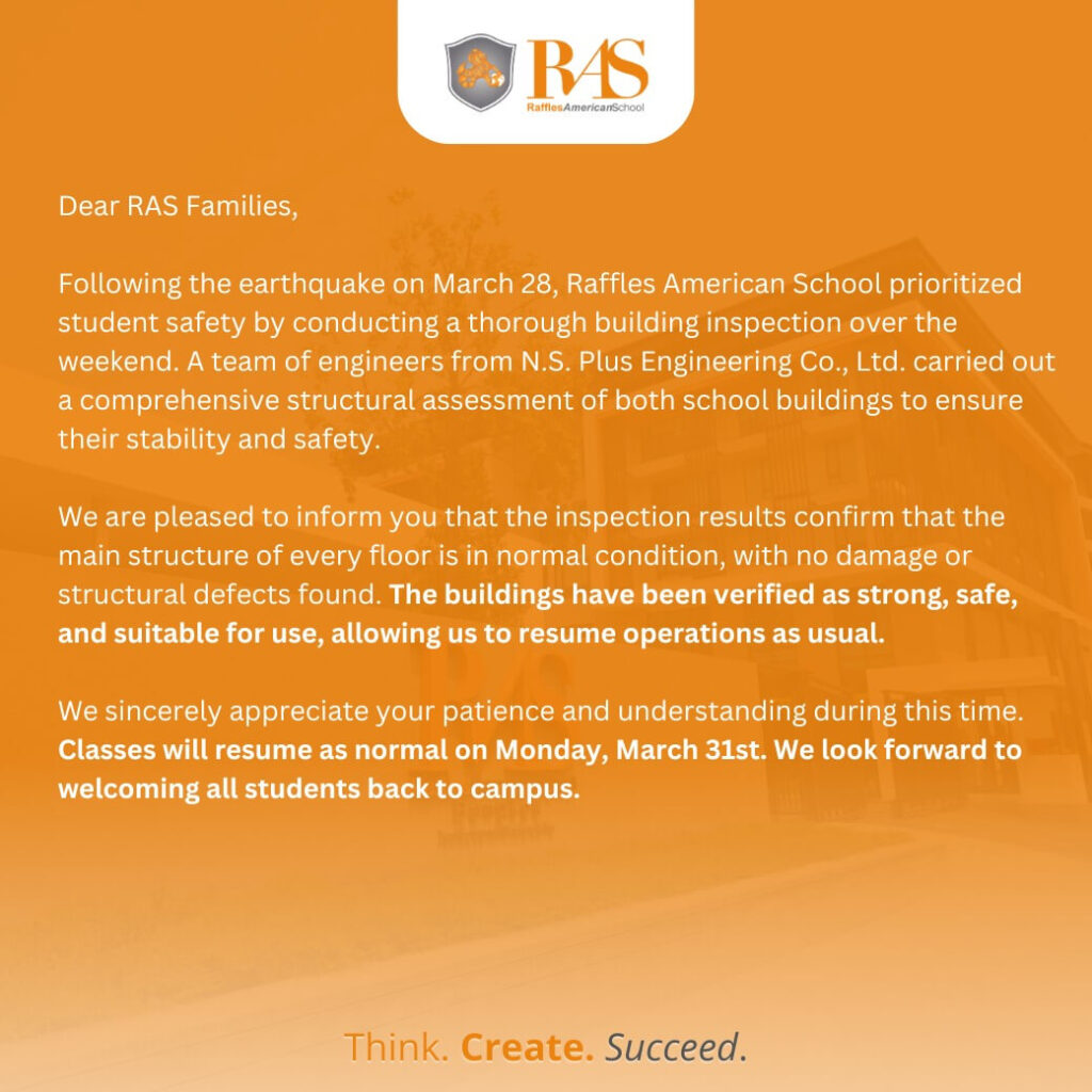 ประกาศสำคัญ: เปิดทำการเรียนตามปกติอีกครั้งในวันที่ 31 มีนาคม
