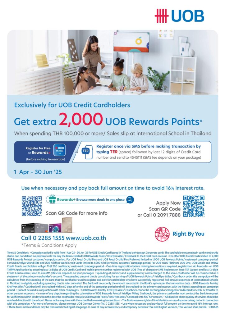 รับคะแนนสะสมพิเศษ 2,000 คะแนนกับบัตรเครดิต UOB ที่ Raffles American School