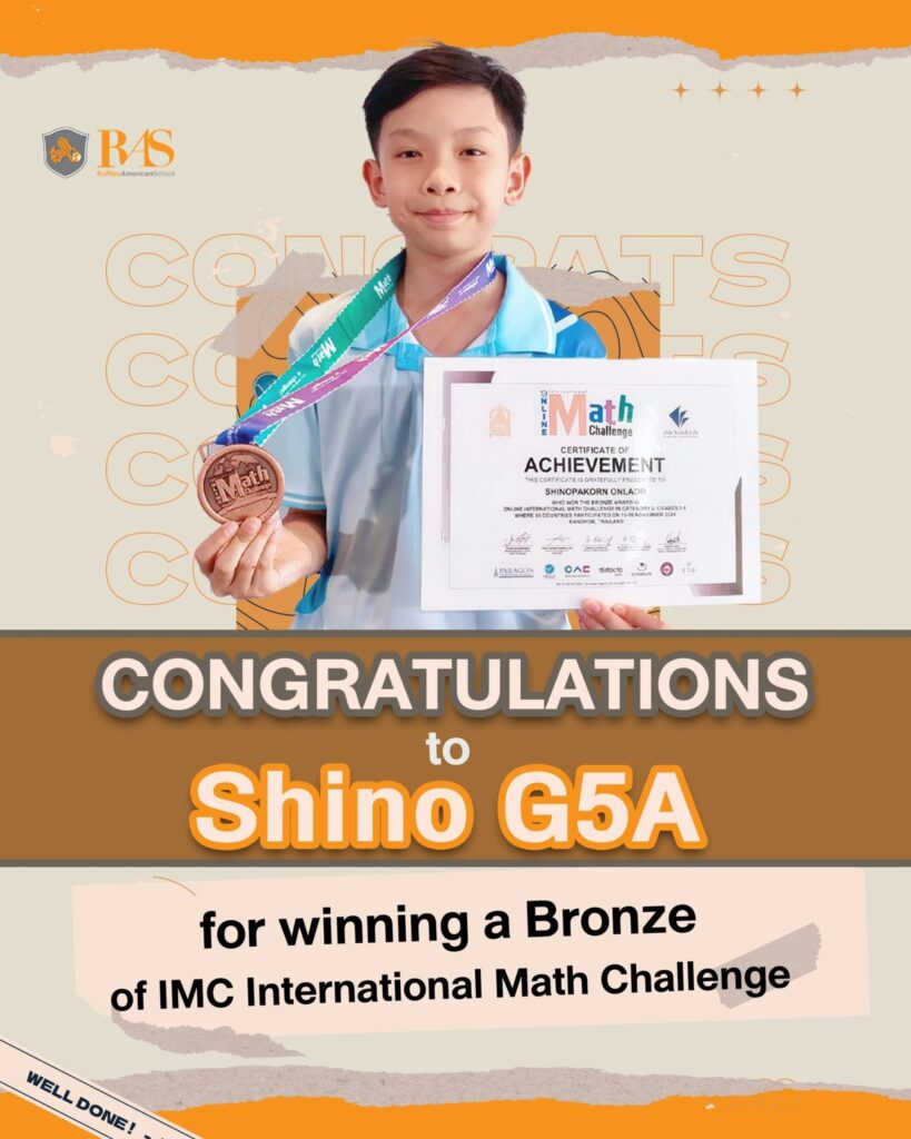 Shino G5A คว้าเหรียญทองแดงจากการแข่งขัน IMC International Math Challenge