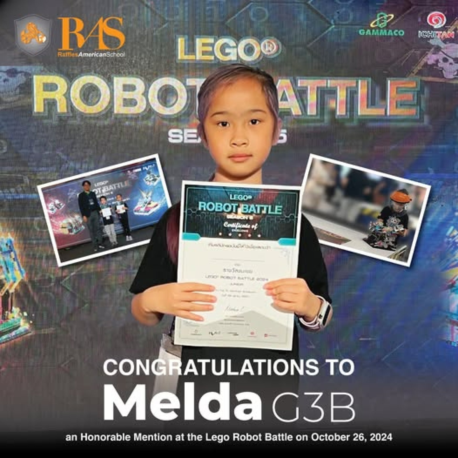 Melda G3B ได้รับรางวัลชมเชยจากการแข่งขัน LEGO Robot Battle