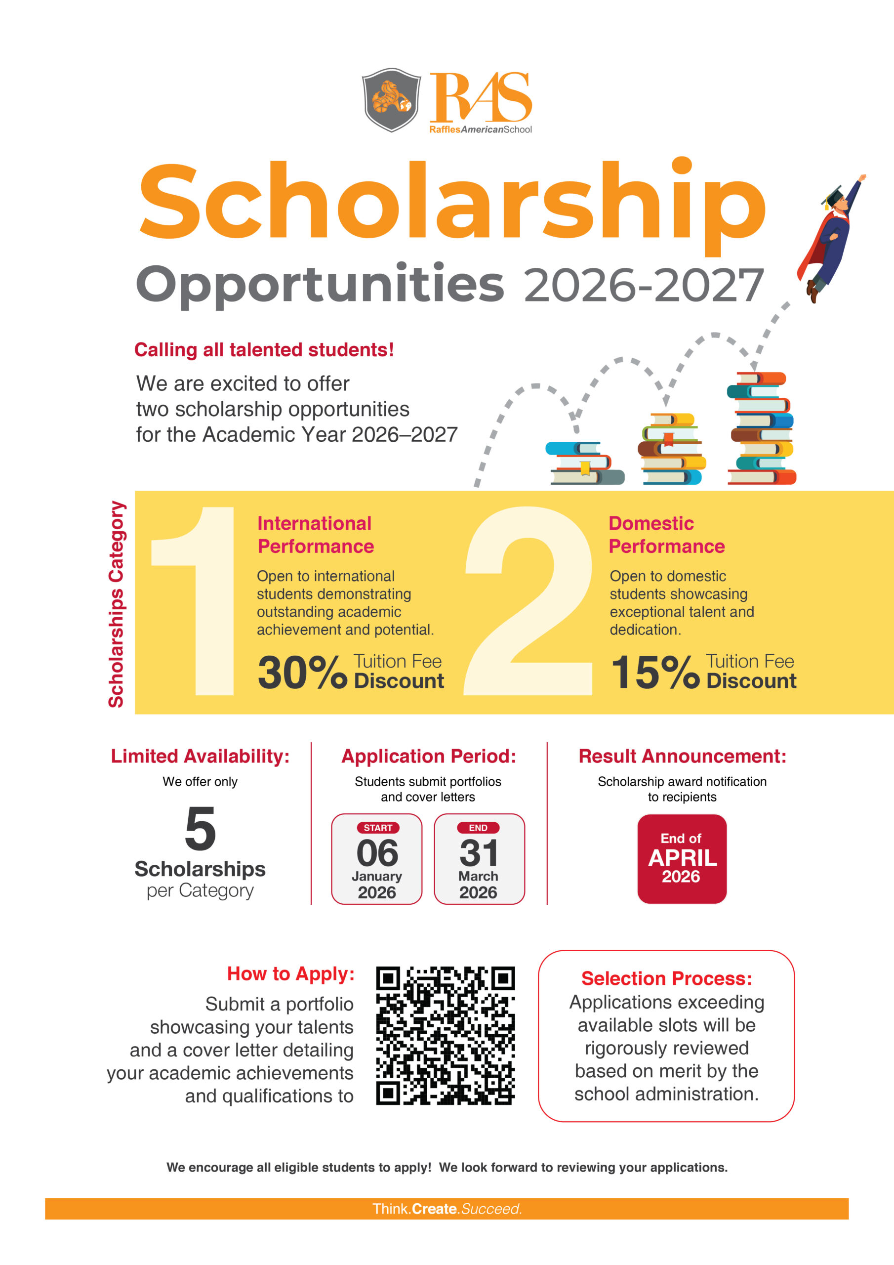 Raffles American School ขอเชิญชวนนักเรียนที่มีความสามารถและมีผลการเรียนดี สมัครขอรับทุนการศึกษาสำหรับปีการศึกษา 2027–2028